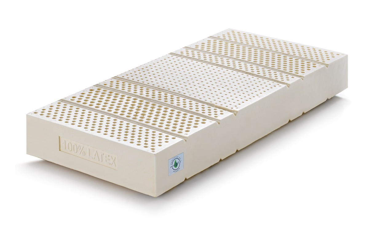 Colchón Látex ortopédico de firmeza H2 MEDIA con 7 zonas, compuesto por 1 bloque bialveolado alto 18 cm antibacteriano y antialérgico, alta densidad más de 70 kg/m3. Alta ergonomía para una perfecta adaptación al cuerpo, para que la columna vertebral mantenga una correcta alineación.